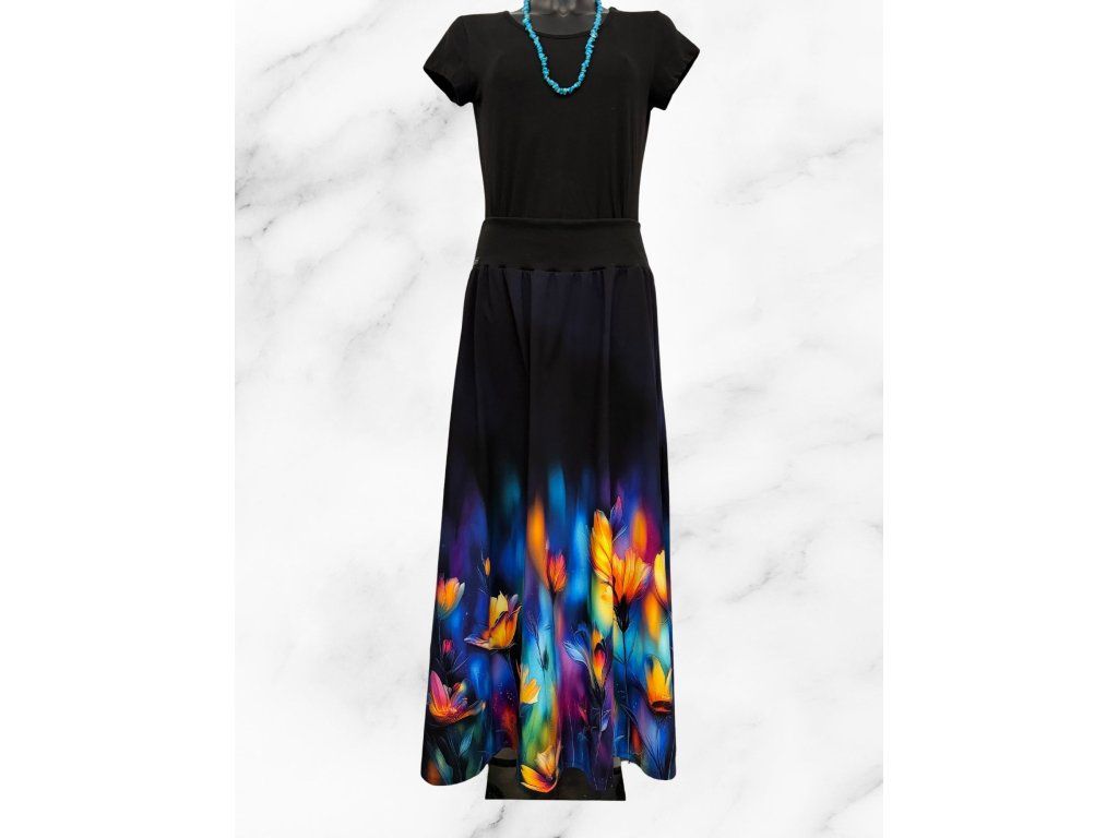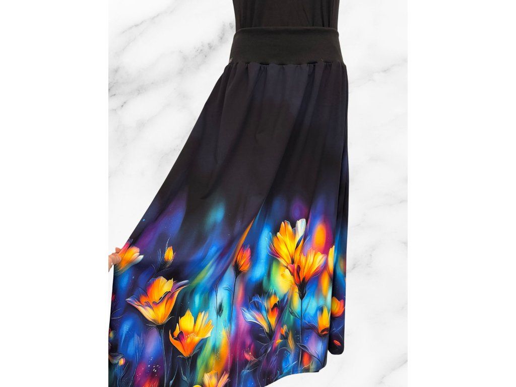 Dámská dlouhá na zem půlkolová úpletová sukně, barevné krokusy, vel L,XL