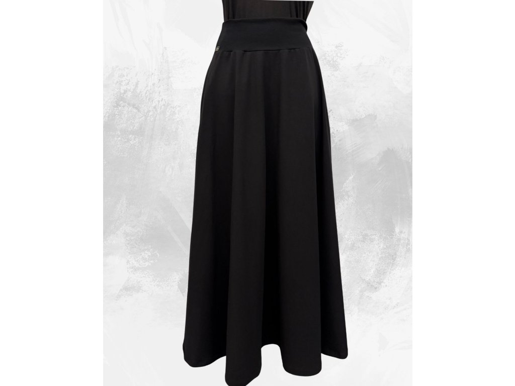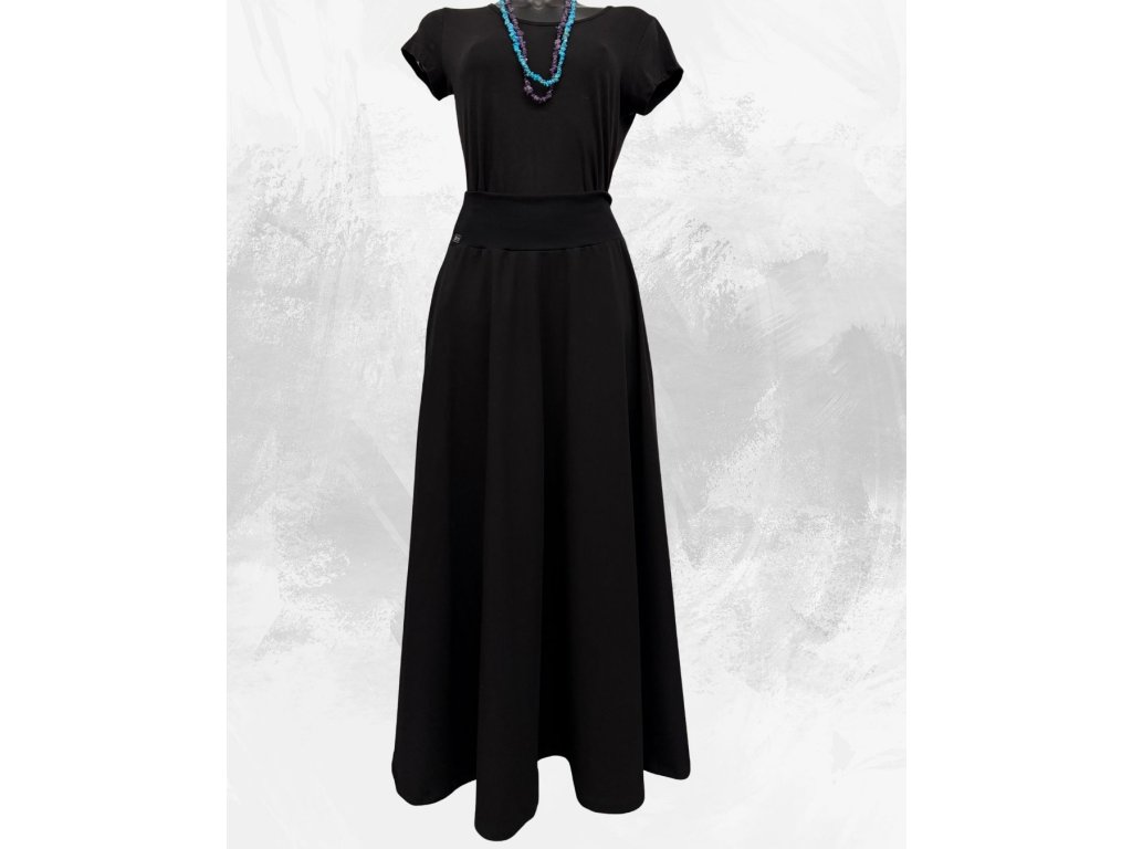 Dámská dlouhá na zem půlkolová úpletová sukně, černá