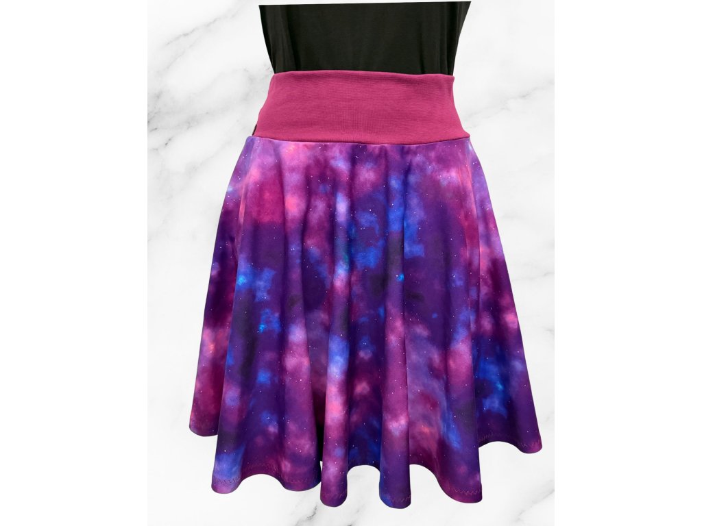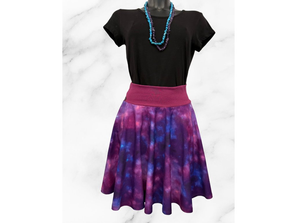 Dámská krátká kolová úpletová sukně, modrofialová mračna
