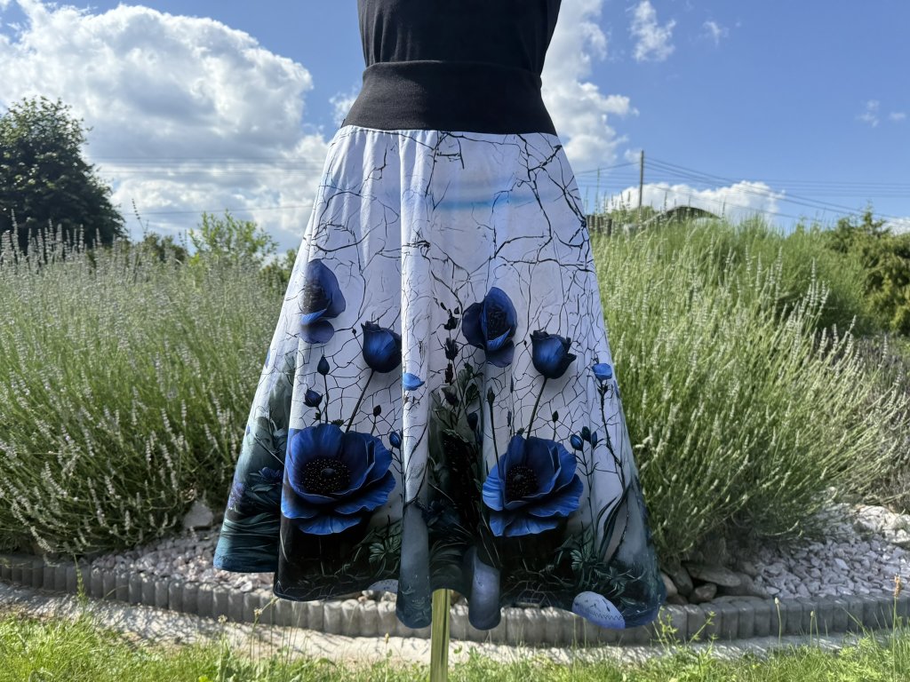 - střih - půlkolová sukně s délkou 70cm - pod kolena u vel. S+M, 64cm u vel. L+XL