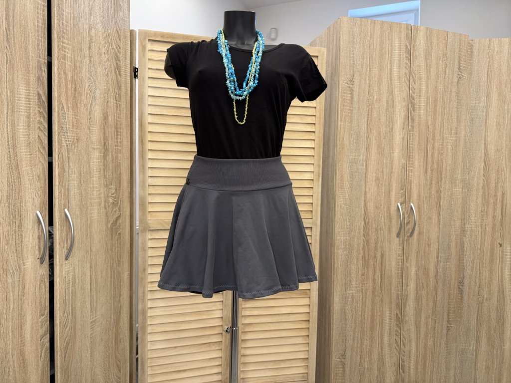 Dámská mini krátká kolová úpletová sukně, šedá antracit, vel S,M