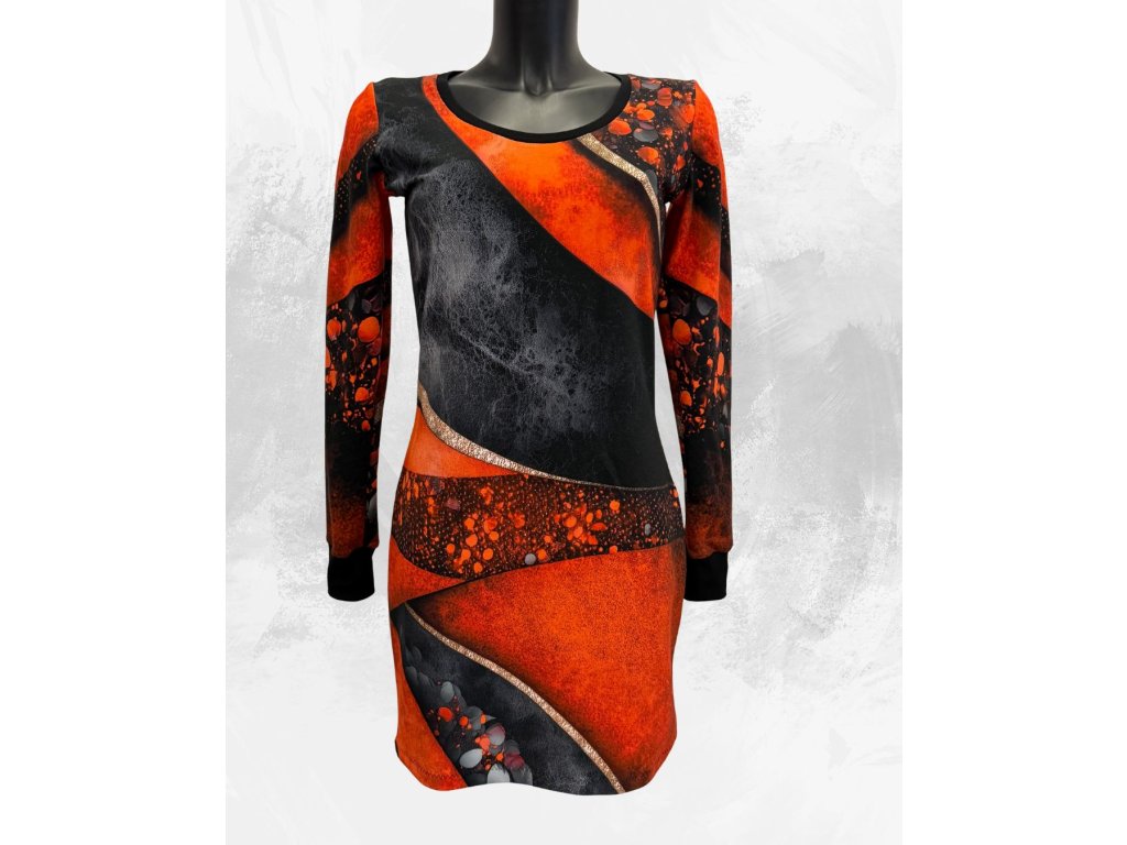Originální šaty z teplákoviny, s dlouhým rukávem, ve kterých vyniknete. Úžasný motiv barevné geometrie.