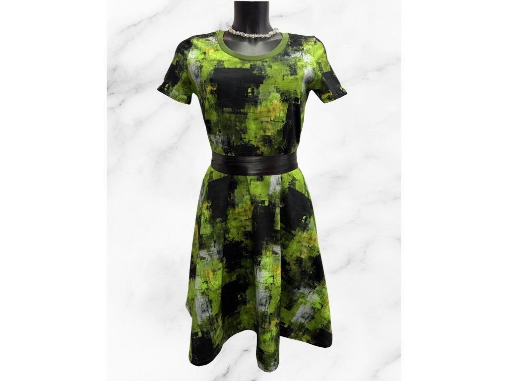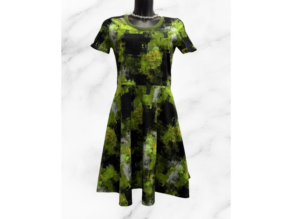 Dámské půlkolové šaty, mechově zelená s černobílou