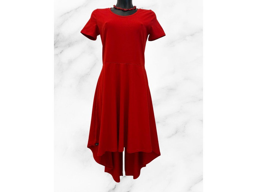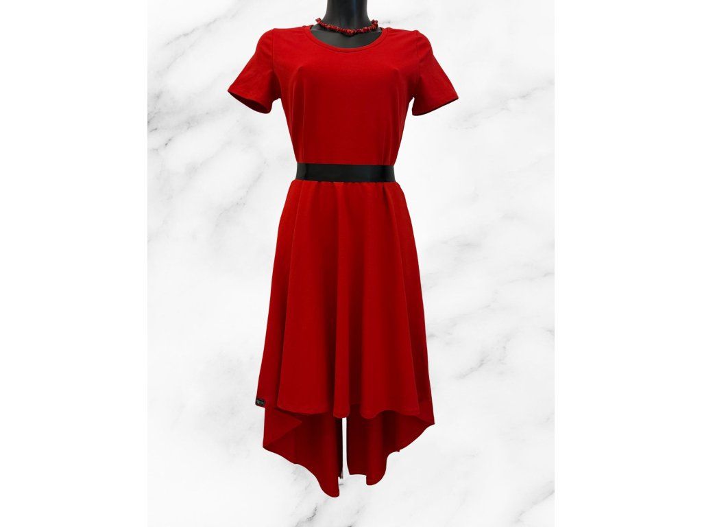 Dámské půlkolové šaty s prodlouženým zadním dílem, červená
